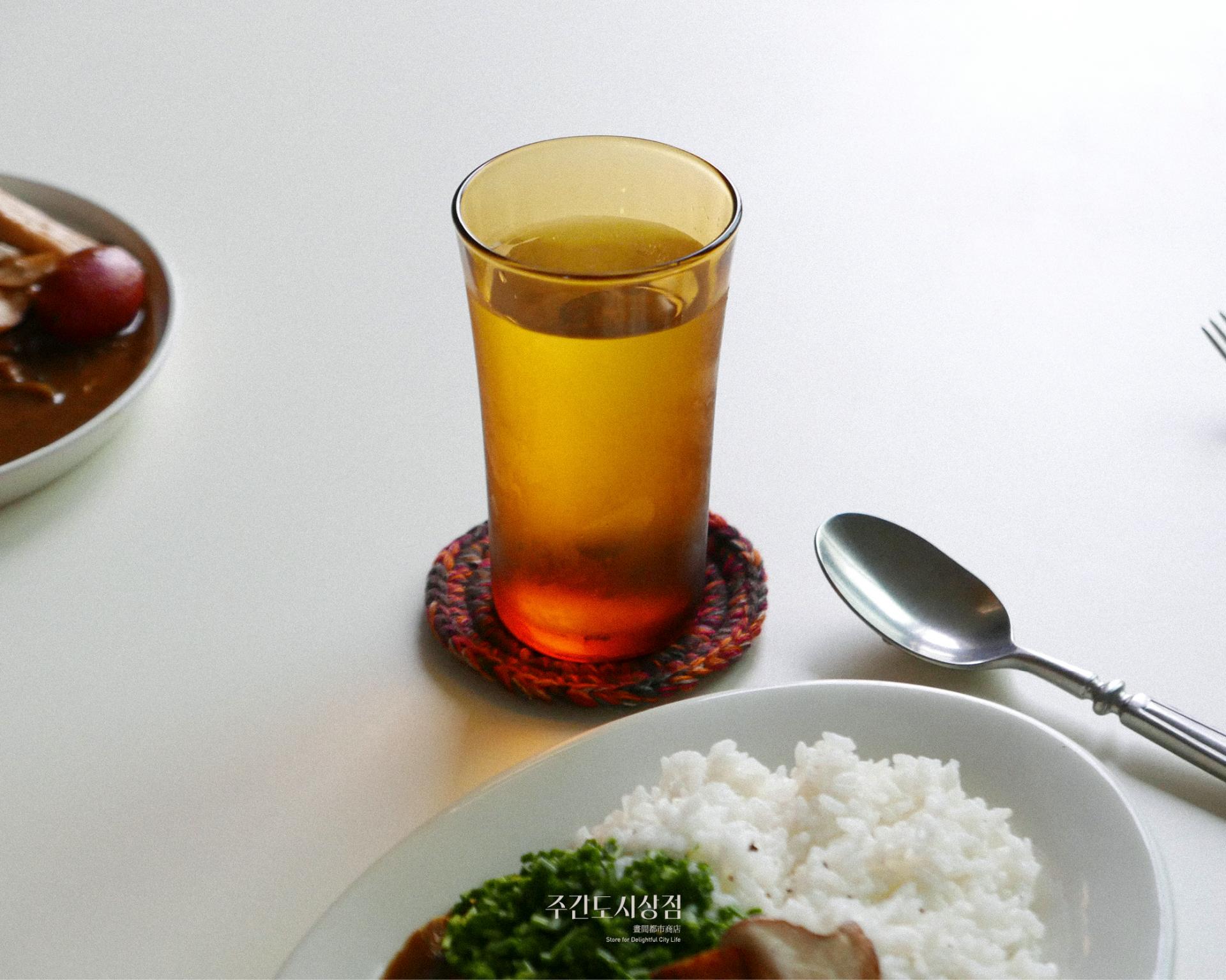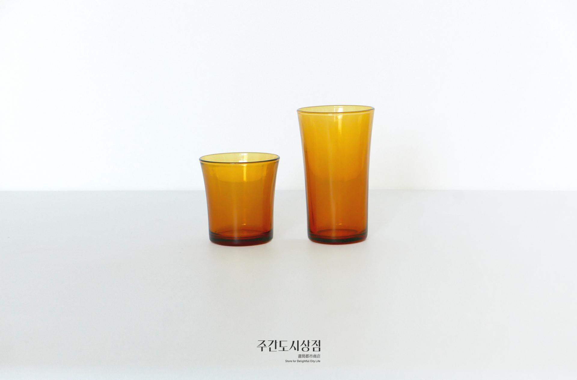 엠버 색상의 길이가 긴 컵입니다. 데일리 글라스(210ml)의 긴 버전으로 물, 쥬스, 소프트 드링크 등 다양한 음료를 드시기 좋습니다.
