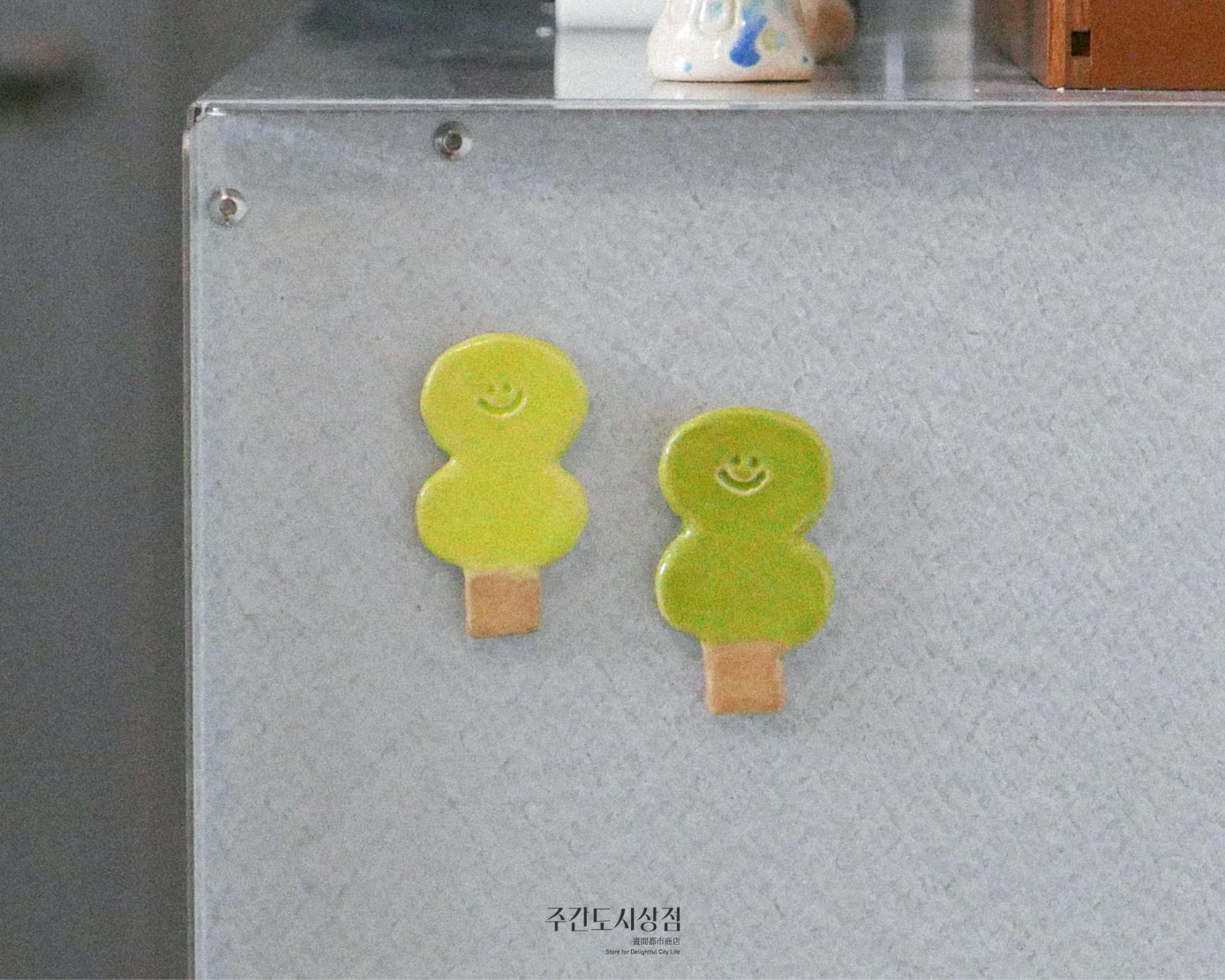 봄과 잘 어울리는 푸른색의 귀여운 나무 자석으로 사진, 엽서 등을 붙이거나 가벼운 물건을 걸어 놓을 수 있는 제품입니다. 색상은 연한 녹색과 조금 짙은 녹색 두 가지로 되어 있습니다. (상세페이지 색상 참고)