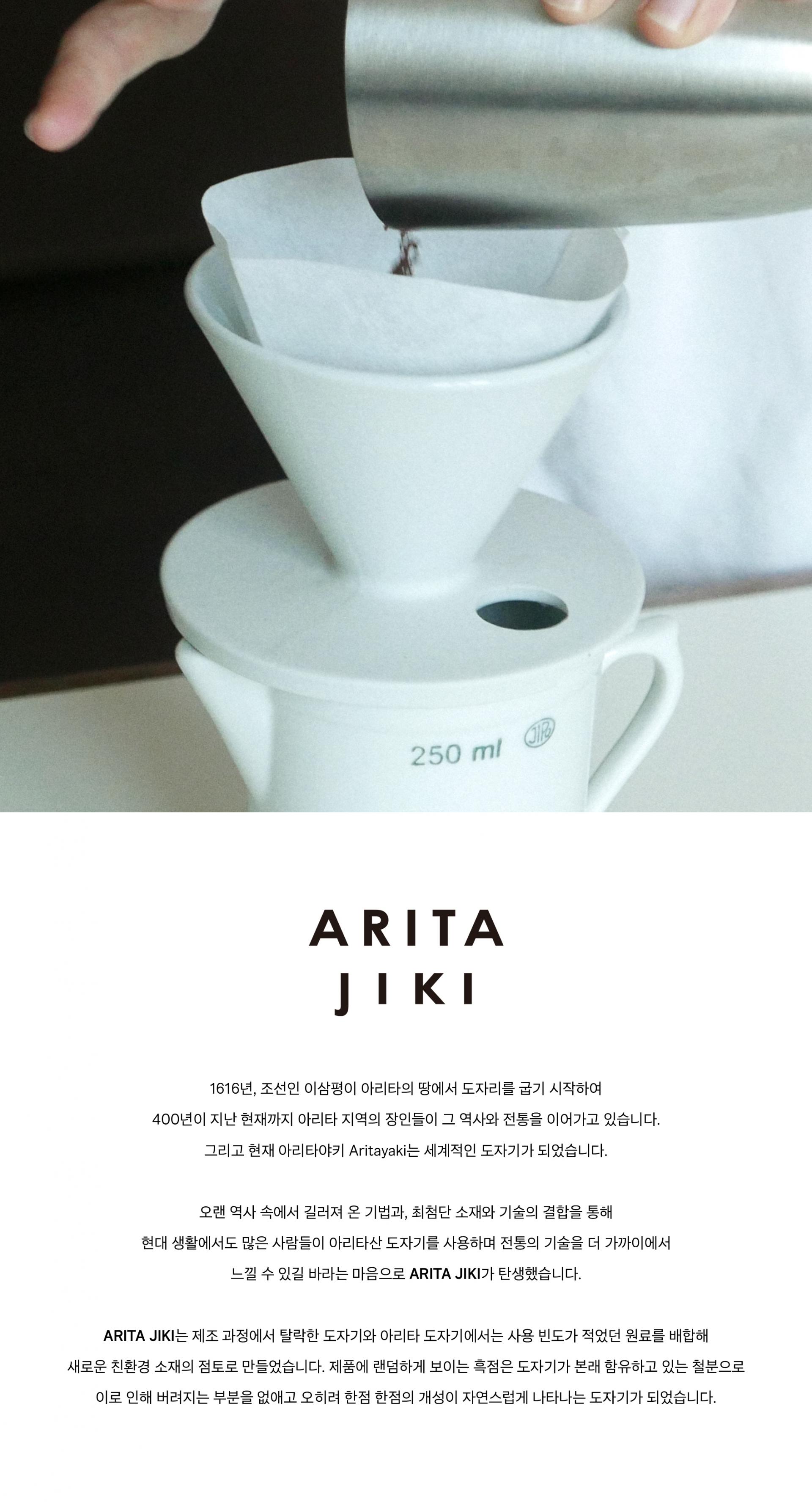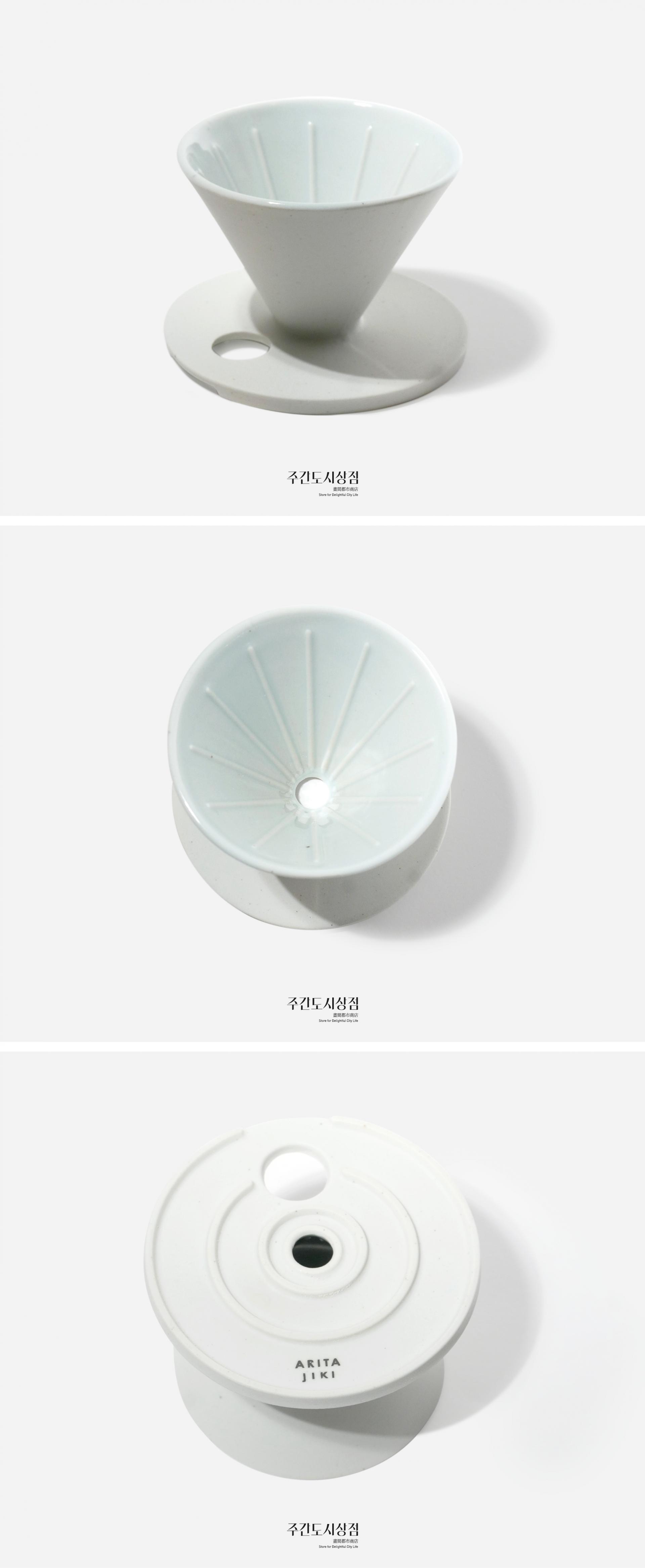 Arita Jiki 커피 드리퍼의 겉면은 유약 처리가 되어 있지 않아 Arita Jiki 도자기만의 특유의 색감과 질감을 잘 느낄 수 있습니다.