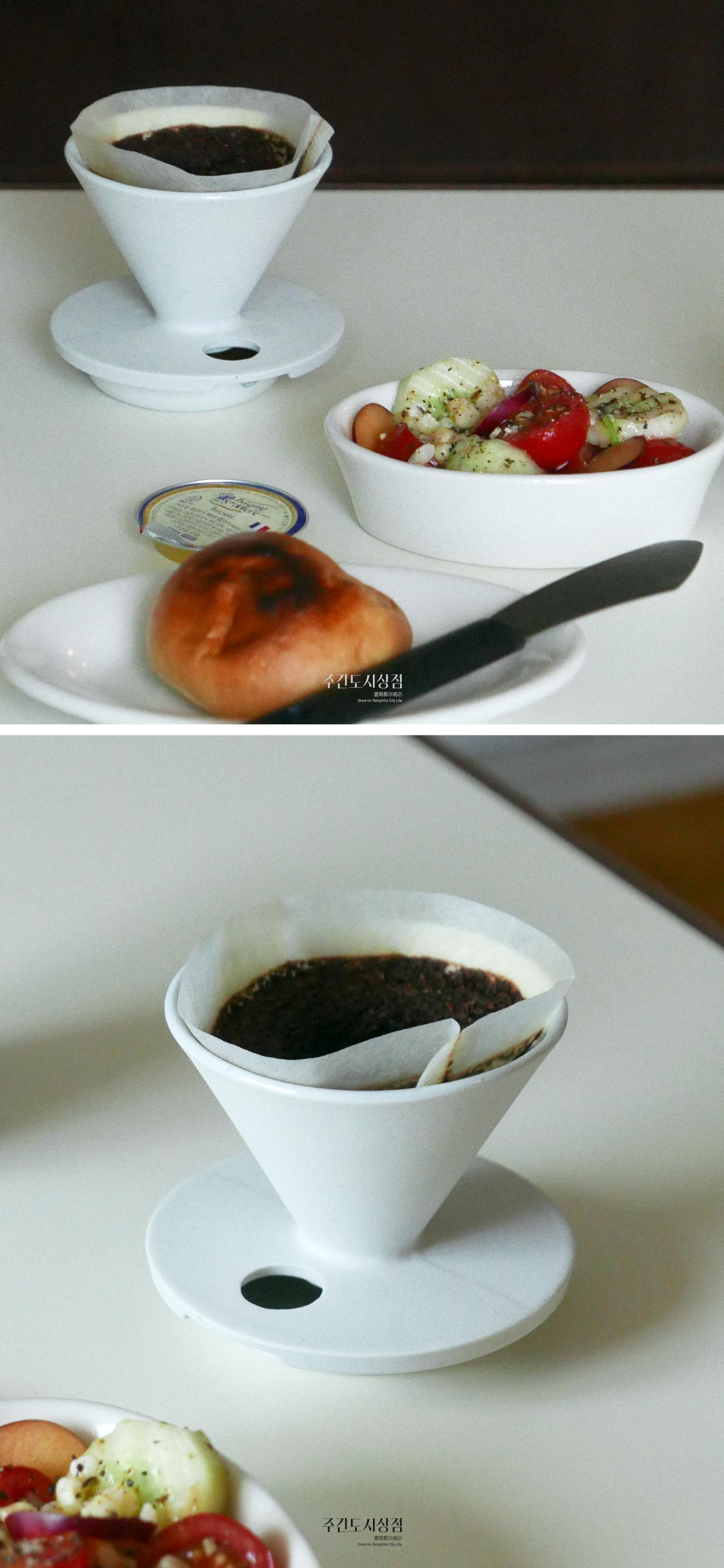 커피 드리퍼의 뚫려 있는 구멍을 통해 커피의 양을 확인할 수 있습니다.