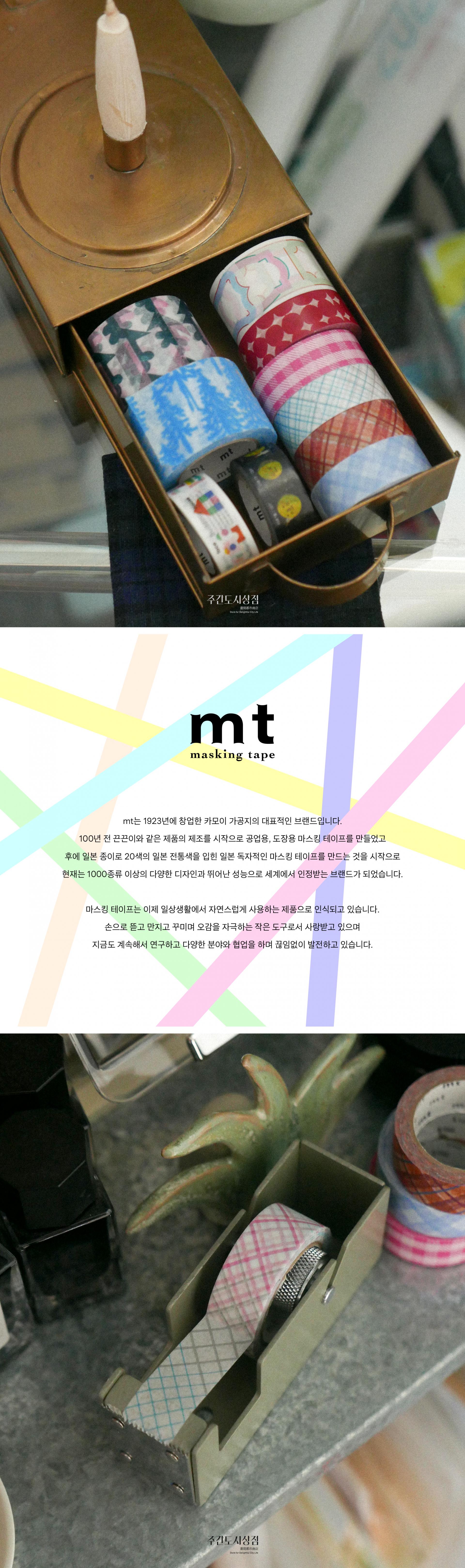 *mt 마스킹 테이프는 2023년 100주년을 맞이한 기업 카모이 가공지의 대표 브랜드입니다. 다이어리를 꾸밀 때나 포장, 일상생활에서 다양하게 활용가능합니다. 손으로 뜯고 만지고 꾸미며 나만의 창의력을 발휘해 보세요.