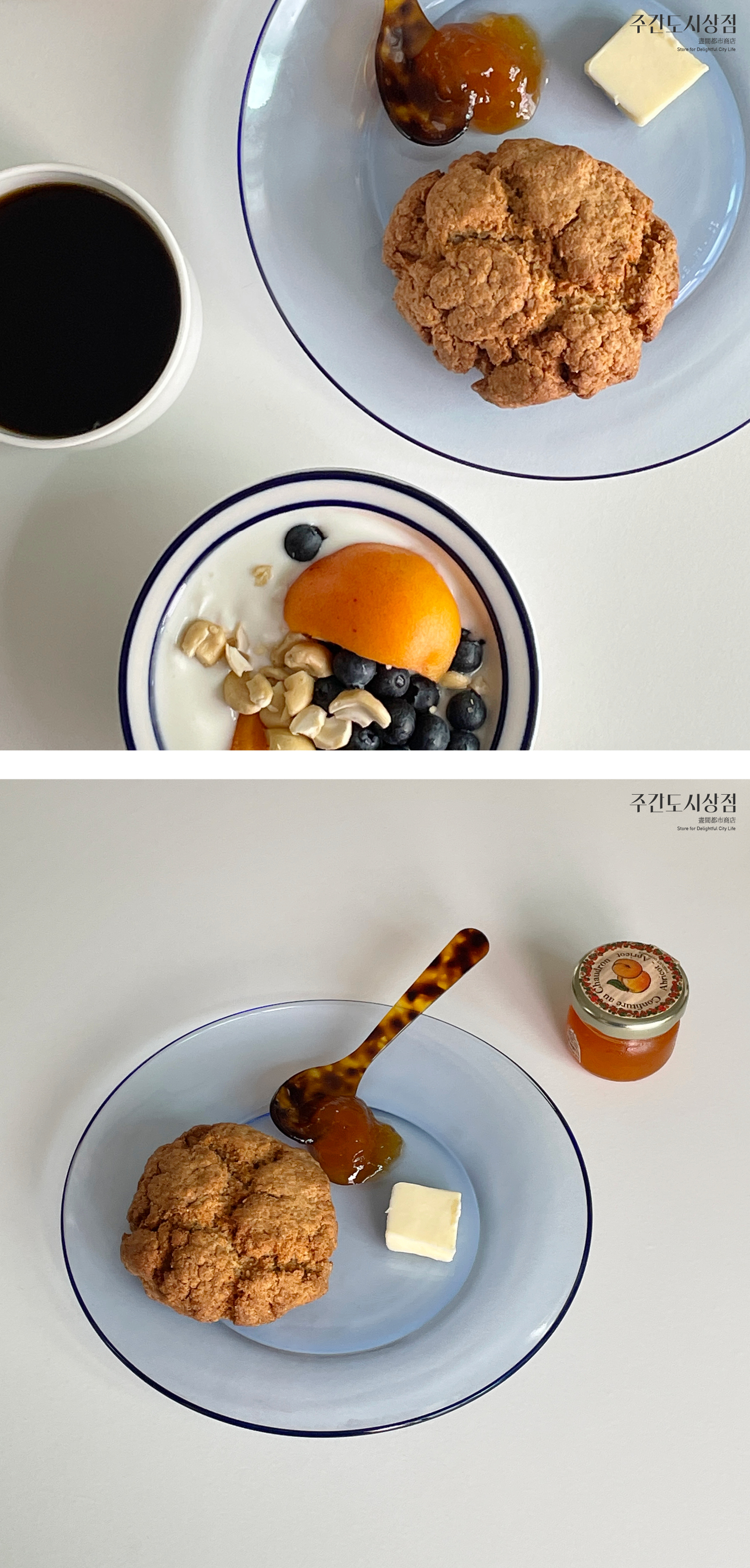 하늘하늘한 마린 색상의 가벼운 디저트용 접시로 너무 강하지도, 너무 평범하지도 않은 색상의 플레이트입니다. 단독으로 케이크 등의 디저트를 먹을 때도 아름답고, 다른 접시와 함께 조화롭게 사용하기도 좋은 그릇입니다.