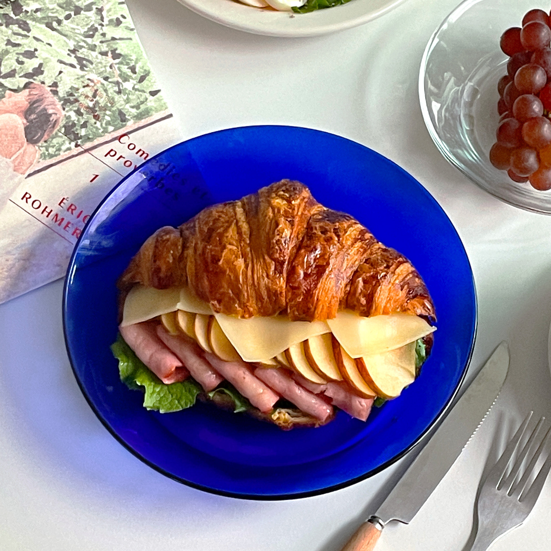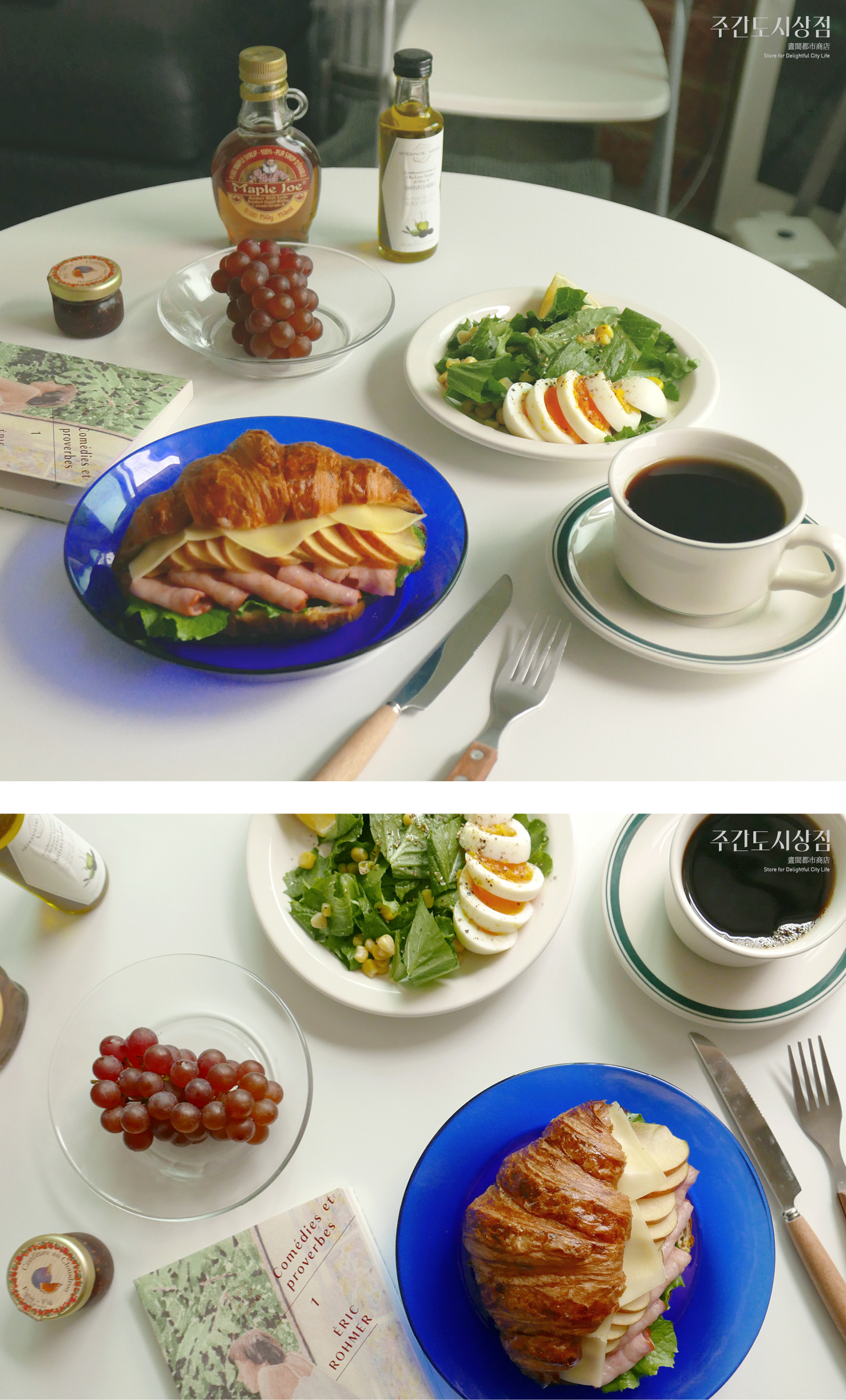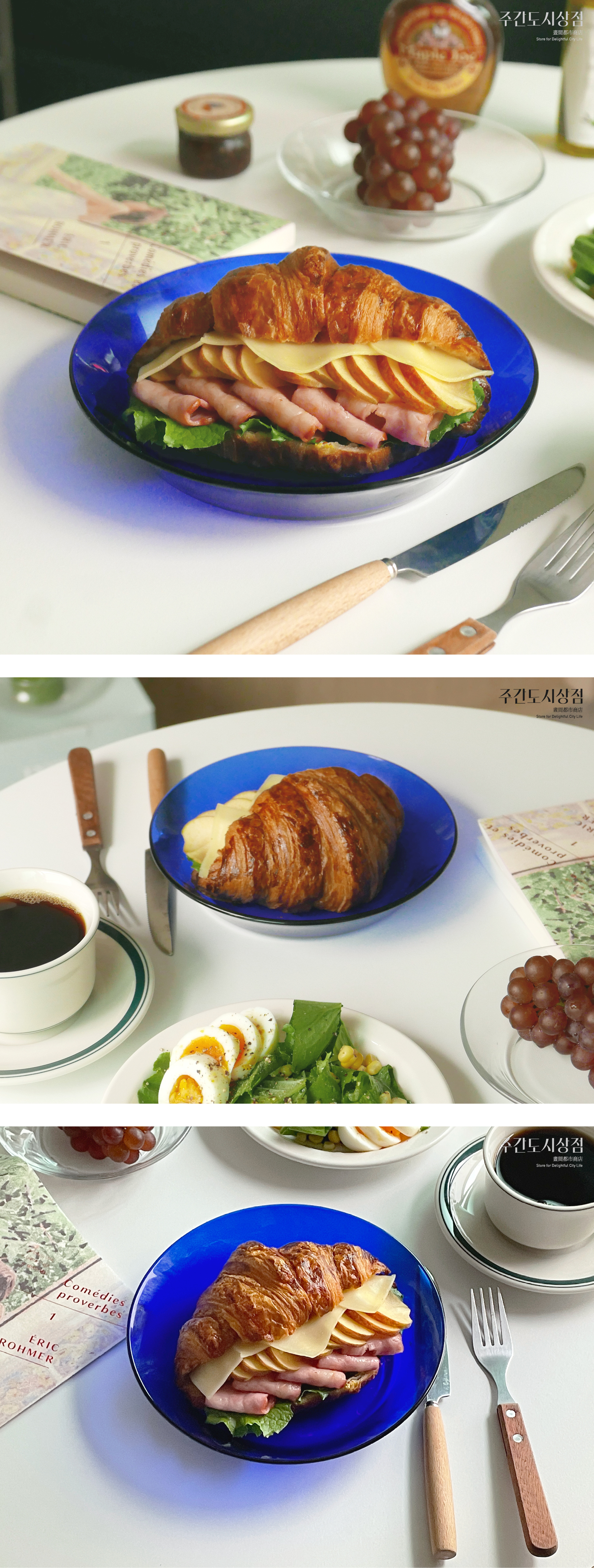 영롱한 파란빛 플레이트입니다. 속이 깊고 강렬한 색상이 포인트로 소스가 들어간 요리나 빵, 브런치 등을 먹을 때 사용해도 매력적입니다. 단독으로도 또는 다양한 그릇들과 믹스매치 하기도 좋은 플레이트입니다.
