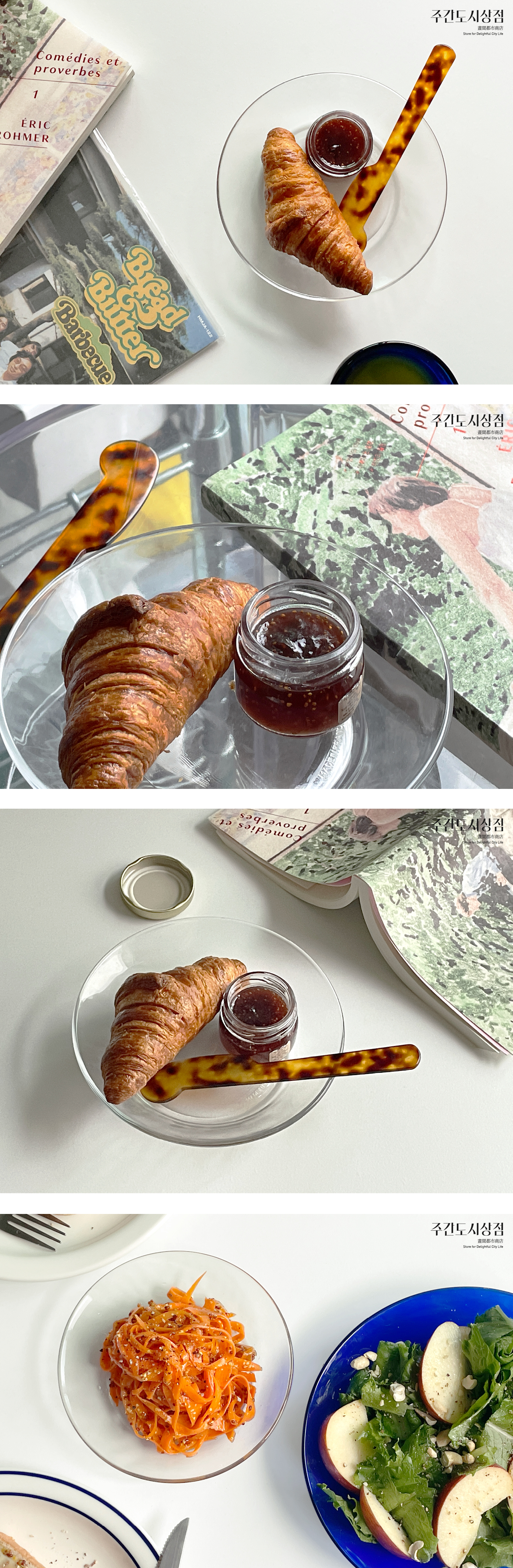평평한 그릇과 달리 완만하지만 깊이감이 있고 맑고 투명한 플레이트는 차분하고 우아한 느낌을 줍니다. 아담한 사이즈로 정갈하게 디저트를 먹기도 좋고 개인 앞접시 혹은 반찬을 담아내기도 좋습니다.