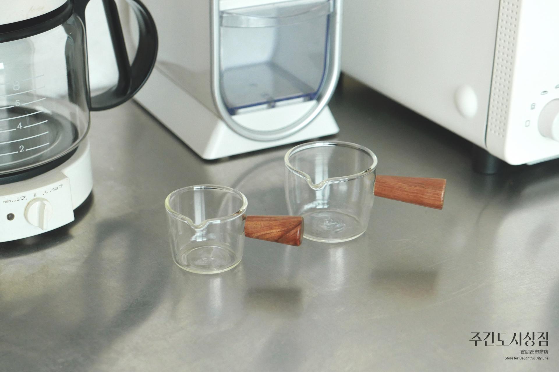 입구가 쉽게 따를 수 있게 되어 있으며 에스프레소 샷, 우유, 시럽, 소스볼 등으로 다양하게 사용할 수 있습니다. (에스프레소 샷은 작은 사이즈는 원샷, 큰 사이즈는 투 샷으로 적당합니다.