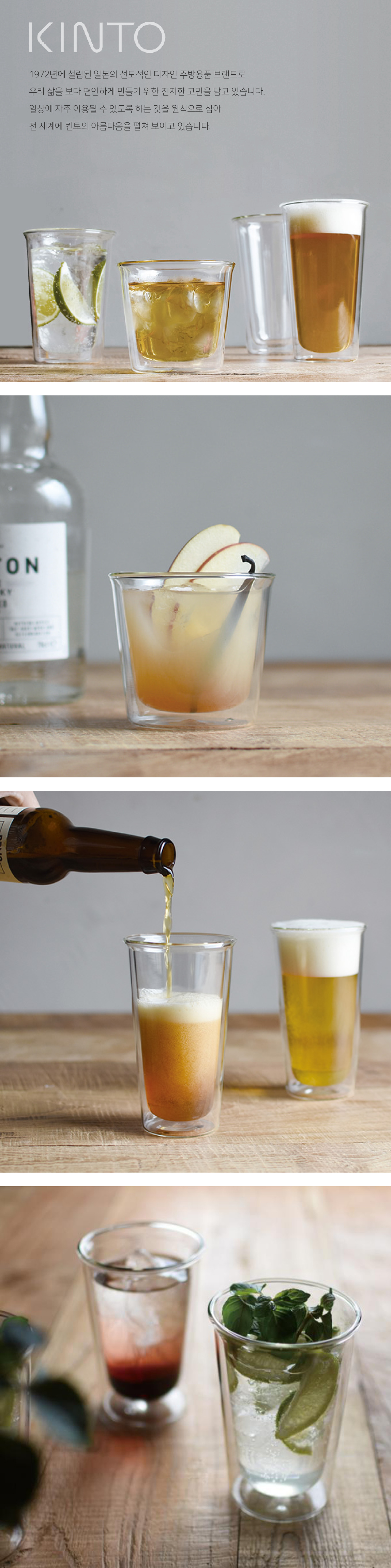 투명하고 깔끔한 디자인의 내열 유리잔입니다. 내열유리의 이중구조로 보온, 보냉 효과가 뛰어나고 표면에 물방울이 잘 맺히지 않으며 뜨겁지 않아 편리하게 사용할 수 있습니다. 투명한 이중구조로 맑고 가볍게 떠있는 듯한 느낌을 주는 제품으로 제품 이름(양주잔/칵테일잔/맥주잔)에 구애받지 않고 자유롭게 사용하셔도 좋습니다.