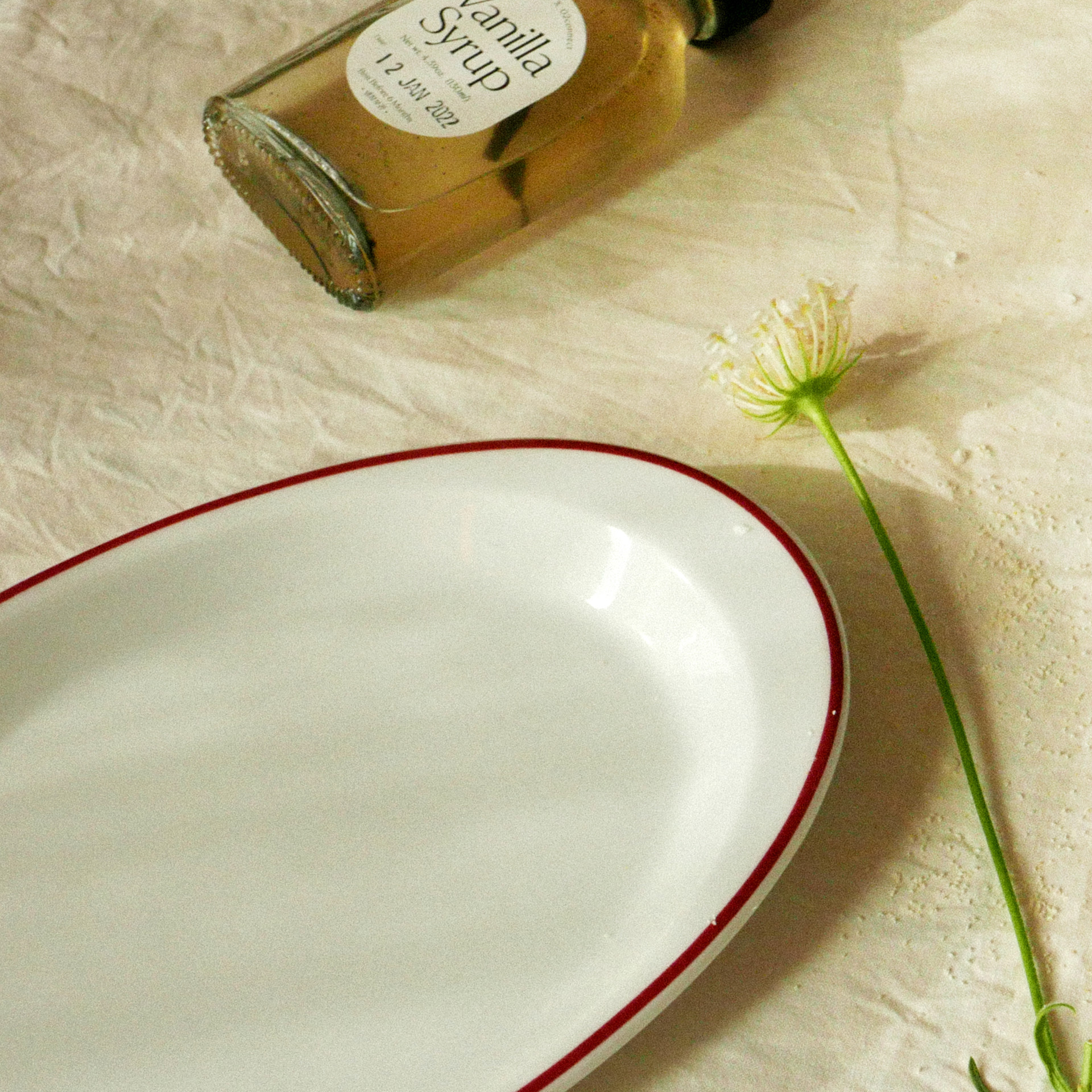 Burgundy line oval plate