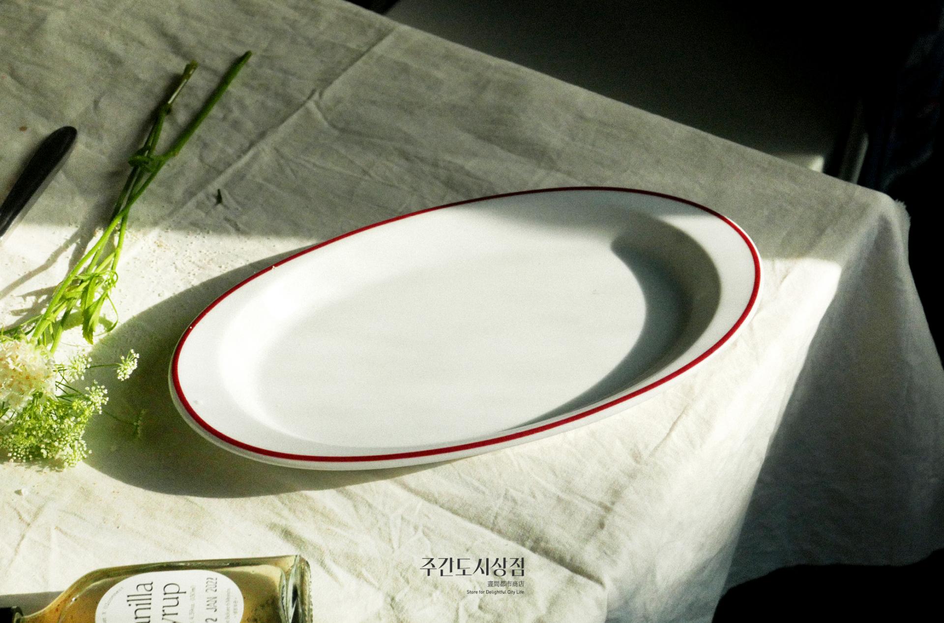 오벌 플레이트는 가로와 세로 엣지의 크기가 달라서 손잡이가 있는 듯한 형태로 되어 있습니다. 이 플레이트에 플레이팅 하면 무슨 요리든 더 특별하게 보이게 할 수 있는 그릇입니다.