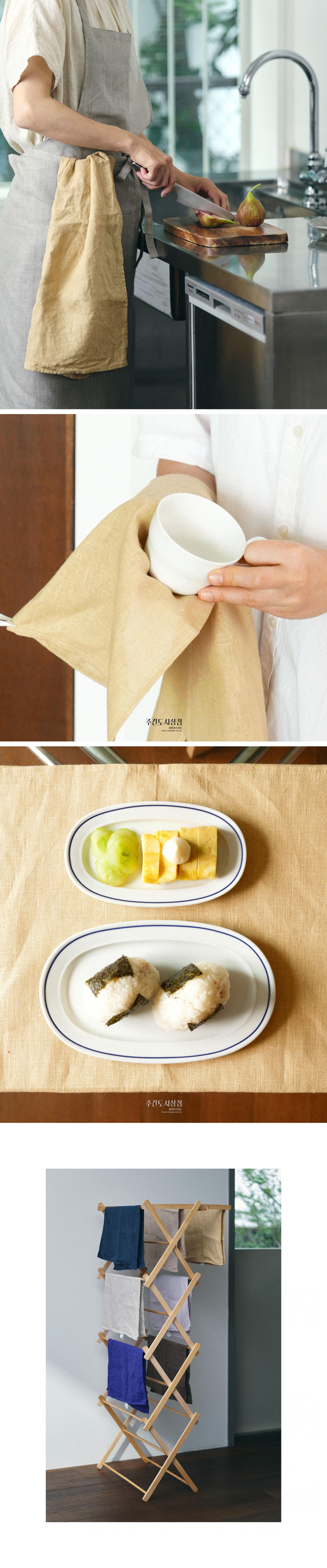 테이블 매트로 사용하거나, 식기를 건조할 때, 바구니의 안감으로, 음료의 보온, 반죽을 덮어두거나 흘린 것들을 치울 때 등 다양하게 사용이 가능합니다.
